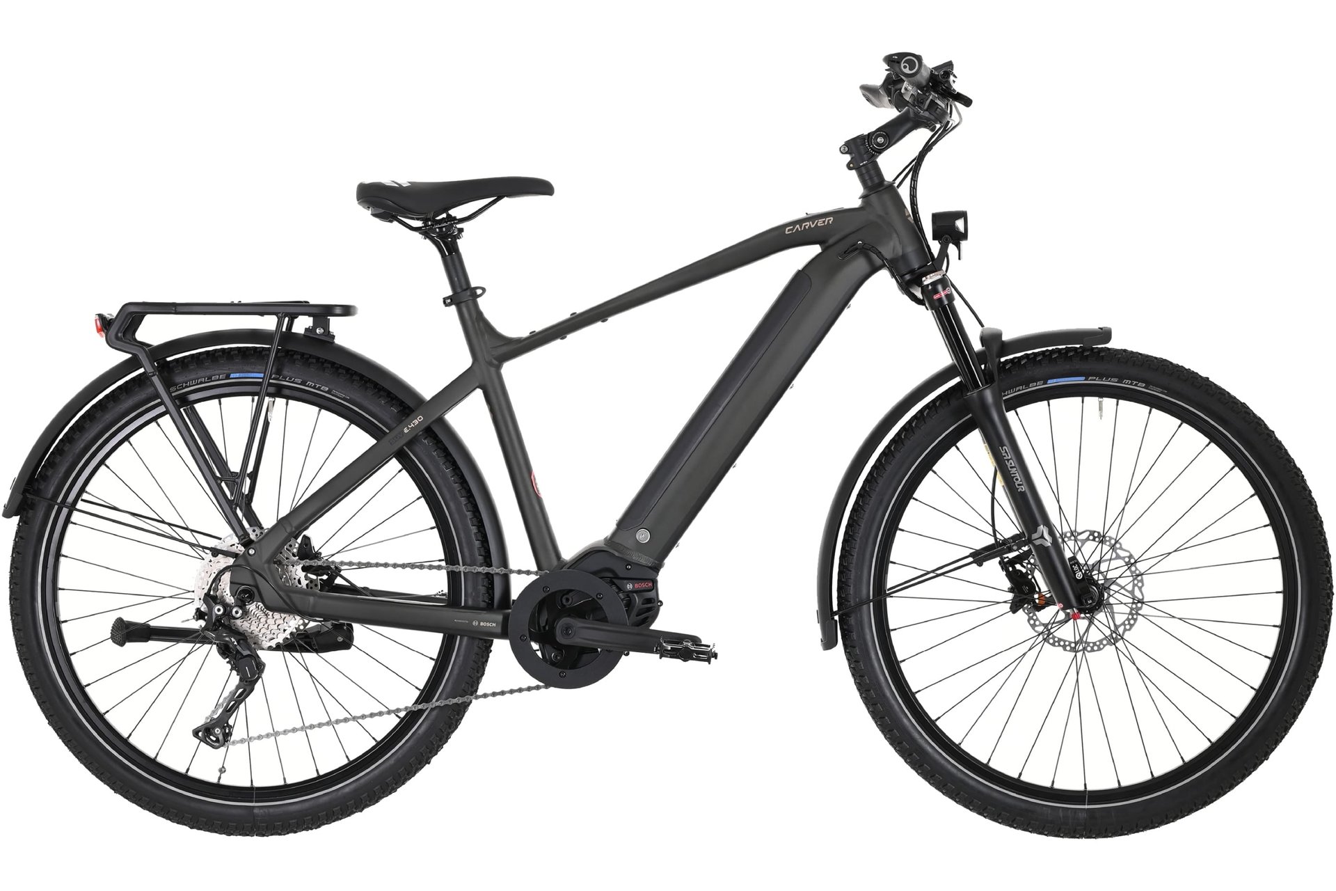 Unser Mittelklasse-SUV unter den Elektrobike-Alleskönnern. Ausgestattet mit einem Bosch Intuvia Bordcomputer, Deore XT Schaltwerk und hydraulischen Scheibenbremsen (BR-MT400) von Shimano. Für noch mehr Fahrkomfort und Sicherheit – auf und abseits befestigter Pisten. Das SUV E.430 ist StVZO-konform vollausgestattet und bis zu einem Maximalgewicht von bis zu 140kg zugelassen.