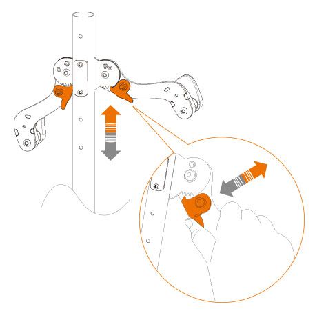 - Die Rahmenhalterungen sind in der Position verstellbar, um die Räder waagerecht zu halten